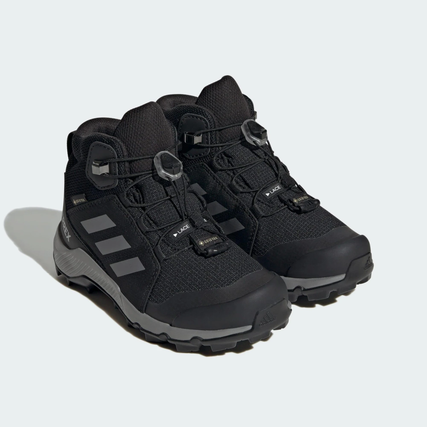 Splashing through puddles is all part of the fun. When the trails get soggy, these kids’ adidas hiking shoes keep their feet dry and comfortable. A waterproof, breathable GORE-TEX membrane repels water. Lightweight EVA cushioning keeps them cruising in comfort. No matter how fast they zoom down the trails, Continental™ Rubber offers extraordinary grip.Made with a series of recycled materials, this upper features at least 50% recycled content. This product represents just one of adidas’ solutions to help end plastic waste.